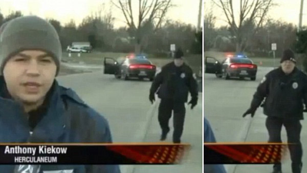 Watch the reaction from this cop when he realizes that he's in the TV News shot! Too funny!